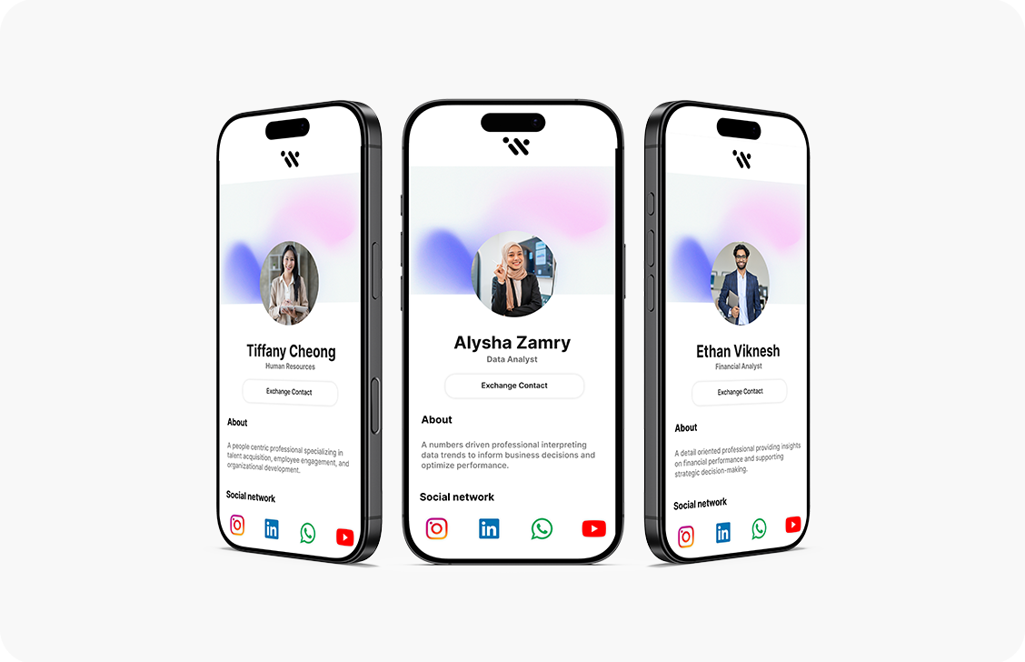Create customizable digital business cards. Our platform simplifies card management, ensuring real-time updates and accurate contact details. With an intuitive dashboard, you can easily customize branding, update employee details, and track engagement insights for a seamless networking experience.