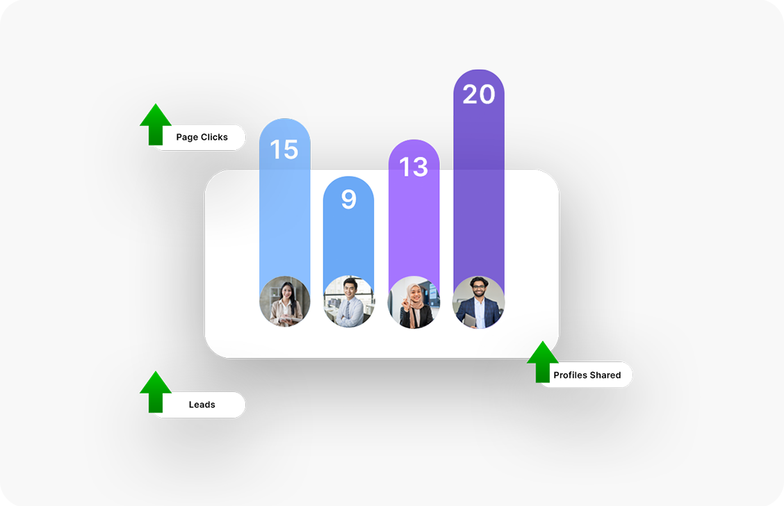 Access real-time data on profile views, card scans, and contact exchanges, along with detailed individual performance tracking.