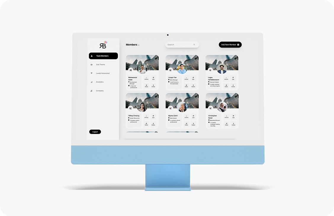 Team members log in to the Royceban app to access their profile, track connections, and unlock more features.