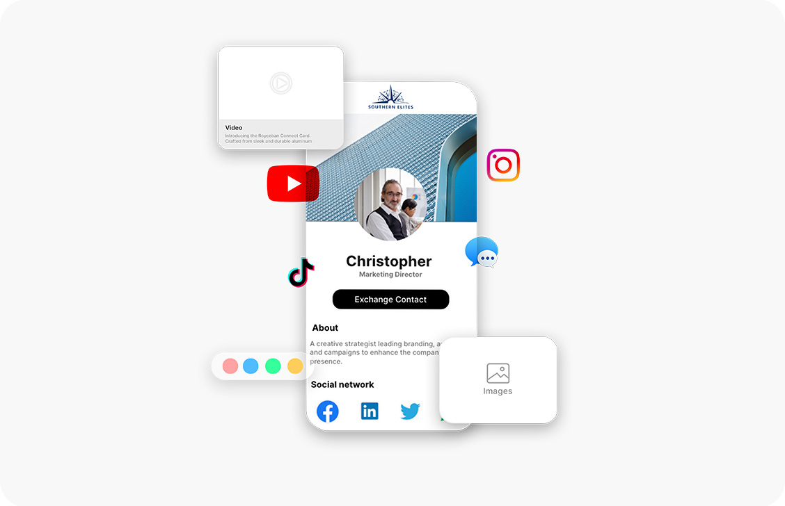 Create a unique and professional digital presence with customizable profiles. Personalize your business profile by adding your company logo and enhancing engagement with videos and images. Our platform ensures a visually appealing and interactive experience, making every connection more impactful.